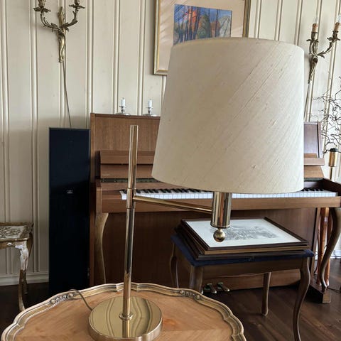 LED skrivebordslampe i hvit farge med fleksibel arm som kan justeres for optimal belysning. Lampen har en rund base som gir stabilitet, og er egnet for arbeids- og lesebelysning. Må hentes/bestilles innen lørdag 31. januar.