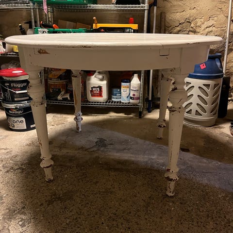 Bordet har tidligere vært malt og malingen er fjernet, men bordet må nok ha seg en puss. Kan også males. Se illustrerte bilder.