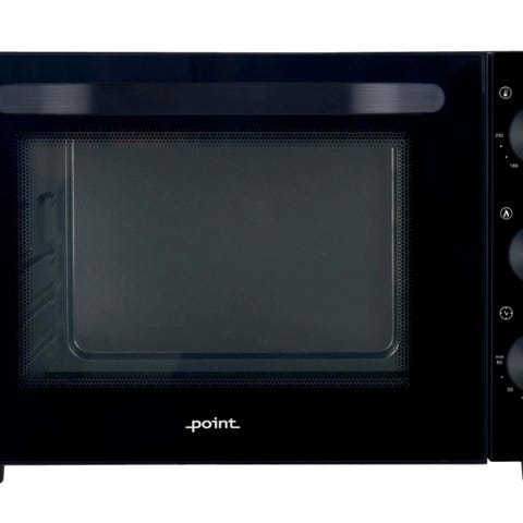 Ectotronic minikomfyr med rist og stekebrett. Enkel betjening med dreiebrytere for temperatur, funksjon og tid.