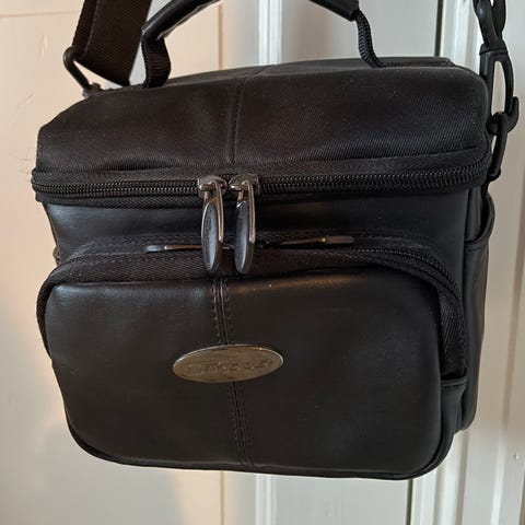 Flott og romslig fotobag selges, kan bæres som rumpetaske eller over skulderen. Skulderreimen kan eventuelt tas av. To åpne sidelommer, fleksibel lomme i front med liten glidelåslomme i. Fleksibel innvendig romdeling, romdelerne kan også fjernes helt. Fotobag med mange muligheter. Selges pga ødelagt kamera som ikke skal fornyes.