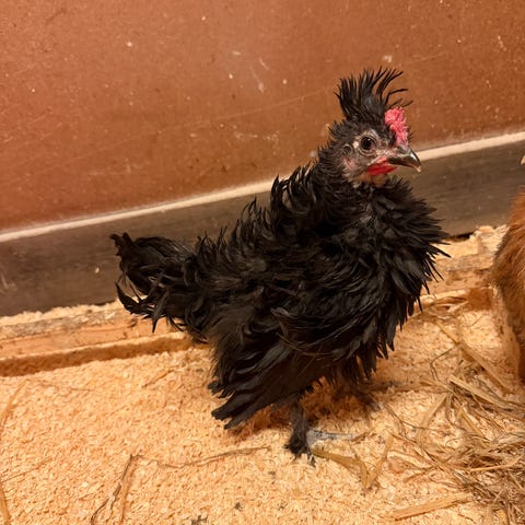 De fleste hønene er av rasen Isa Brown, men det er også noen andre mixraser og reine raser der😀