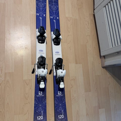 Skiene ble slipt og vokset våren 2025 hos Outdoor. Kun brukt én gang siden, nå er de blitt for liten.