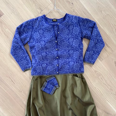 Bredde mellom ermene 55 cm.