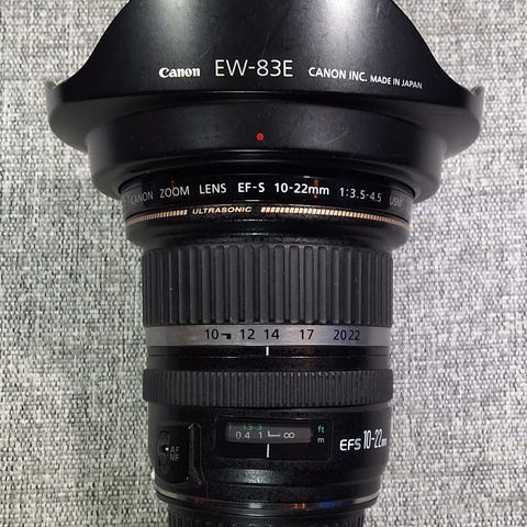 Canon EF-S 10-18mm vidvinkelobjektiv med zoomfunksjon. Objektivet har en blenderåpning på f/4.5-5.6 og er designet for Canon-kameraer med EF-S-fatning. Passer til fotografering av landskap, arkitektur og interiør med bredt synsfelt.