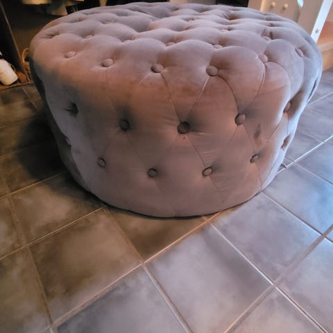 Puff i velour med oppbevaring