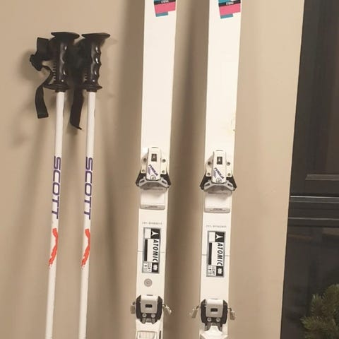 Nordica Elexa alpinski med lengde på 144 cm. Skiene har svart og lilla farge, og er utstyrt med bindinger. Brukt kun to sesonger og er i veldig fin stand. Har også to par staver (ene er langrenns staver) som du kan få med på kjøpet.