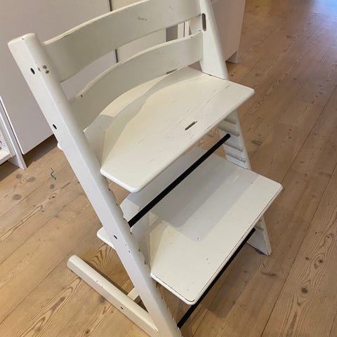 Pent brukt lysegrått sete fra Stokke. Må hentes på Bekkestua.