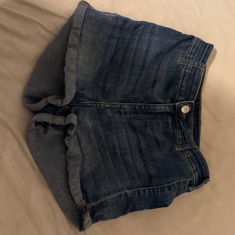 Blå shorts tilpasset gravide i str XL. Lappen er tatt av, men shortsen er ikke brukt. Gått over den og kan ikke se jeg finner noen defekter/bemerkninger på plagget. Kanten på shortsen skal være rufsete.