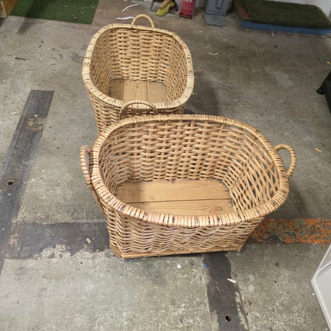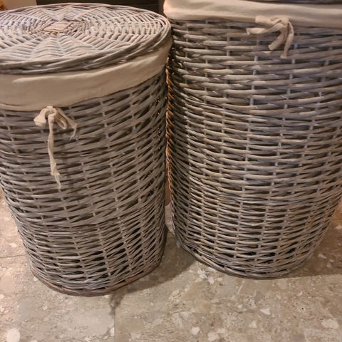Én brun rotting kurv fra Ikea med åpninger på siden som fungerer som håndtak. Den er solid og i fin stand. Hadde tre stk, men har kun én igjen.