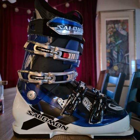 Fint brukte slalomstøvler, Salomon Ghost FS 100. Kjøpt nye i 2021. Brukt i sesong 21/22 og 22/23 av jente (14 år nå). Størrelse 24/24,5, ca 38.