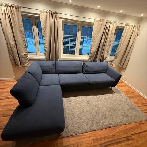 Sofa med sjesalong gis bort. Sofaen fungerer, men fjærene er dårlig noen steder