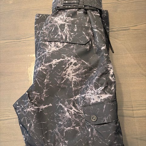 Bukse med blå bakgrunn og hvite flekkmønster. Materiale og størrelse ikke oppgitt.