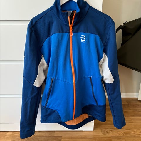 Dæhlie langrenn jakke i blå farge, størrelse XXL for herre. Jakken er designet for ulike sportaktiviteter og har glidelås foran. Materialet og designet er tilpasset for komfort og bevegelighet under aktivitet.
