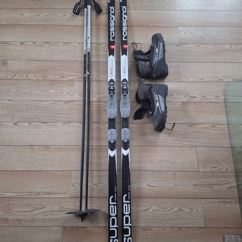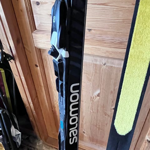 Skiene har kun vært brukt et par ganger. Har bindinger tilpasset støvler 38