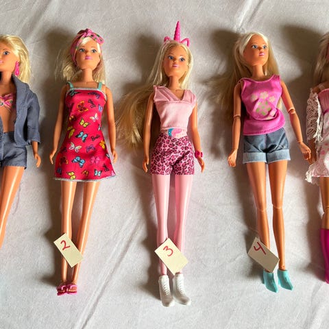 Ihvertfall en av dukkene har fått seg en klipp, en er veldig tynn i håret en mangler noen hårsekker, usikker på om denne også har fått seg en klipp. Den siste har langt fint hår og fremstår som i god stand.
