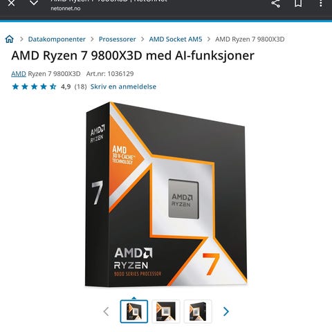 Selger en 9800X3D. En av dem aller beste gaming CPUer en gåf tak i. 8 kjerner, 16 tråder og 5.2GHz boost med 96Mb L3 cache.