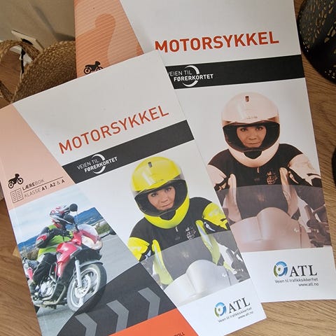 Motorsykkel lærebok innen kategorien Andre tekstbøker. Boken inneholder informasjon og opplæring knyttet til motorsykkelkjøring og relevant teori.