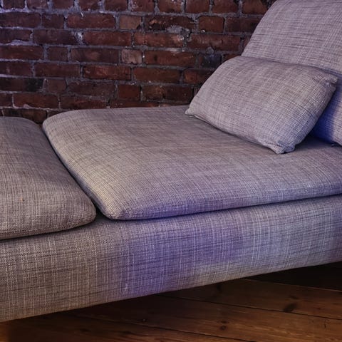 Pent bruk Söderhavn 2-seters sofa selges. Det er montert andre ben enn det som følger med. Det gjør at sofaen er høyere enn målene fra IKEA. Bena som er blitt montert er 20cm.