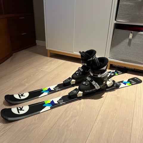 ski Rossignol med fester, lengde 170 cm, skistøvler Nordica størrelse 44, staver