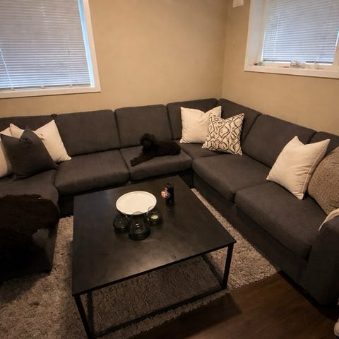 Skeidar hjørnesofa lys grå stoff 5 seater