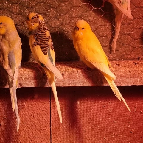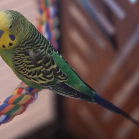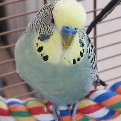Hunn undulat på 1 år. Ikke så veldig tam, men er trygg nok til å spise frø fra hånda, kan få ho på fingeren med litt tålmodighet.