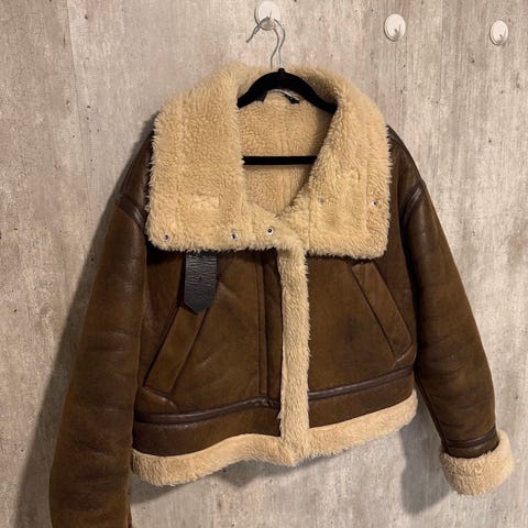 Schott B-3 Bomber shearling / saueskinnsjakke, helt ny og ubrukt, lappene henger fortsatt på. Størrelse medium.