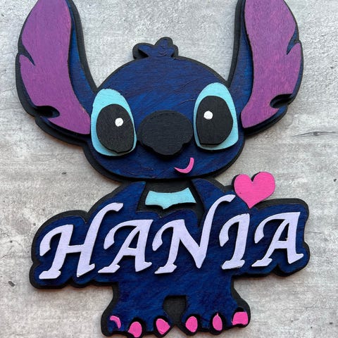 Denne er tilpasset navnet Olivia, men man kan selvfølgelig la være å bruke navnet og kun bruke de rosa, lyseblå og mørkeblå ball-klistremerkene rundt Stitch ☺️
