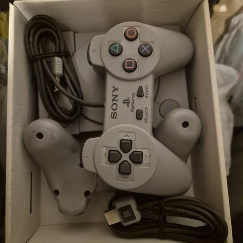 Selger Playstation (PS1) med 1 stk kontroll og 2 spill. Den fungerer helt fint, men har sol gulnet litt i front. Er kun kosmetisk, og går an å fjerne. Dette er retro maskin.