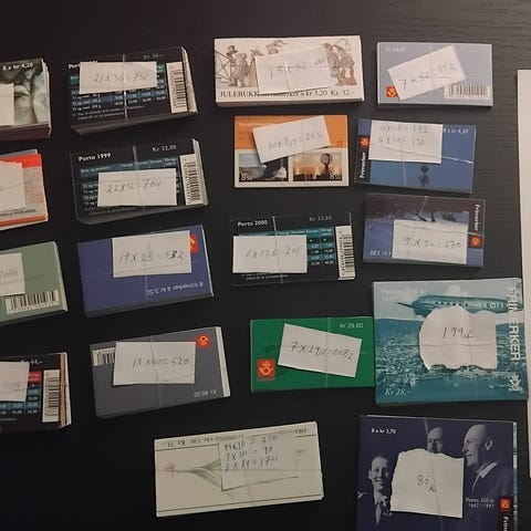 Står priser under bildene. Både frimerkeverdi og hva jeg har ønske om å selge for.