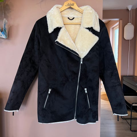 Fin oversized vinterjakke i imitert saueskinn. Jakken er pent brukt.