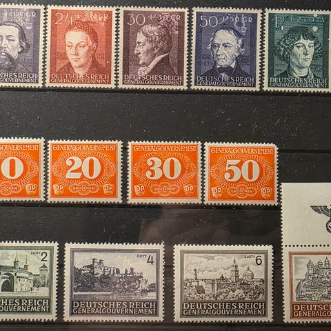 9 forskjellige gamle frimerker fra Fristaten Danzig.
