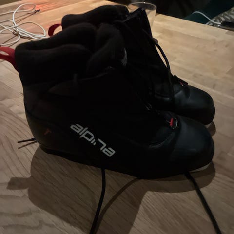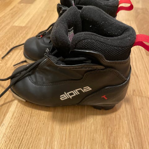 Alpina T langrennsko i svart farge. Skiene har glidelås foran og er utstyrt med feste for bindinger under sålen. Passer for bruk ved langrenn og vinteraktiviteter.
