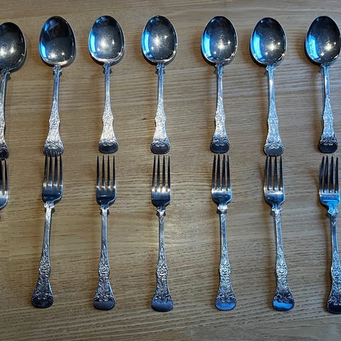 Diverse bestikk i flat rose, 40/20 NM