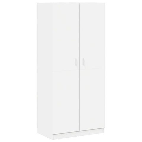 Selger pent brukt garderobeskap i klassisk hvit stil. Solid og romslig modell med to dører og to dype skuffer nederst. Perfekt for soverom, gang eller barnerom.