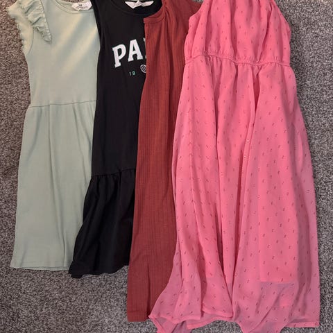 Selger 4 kjempe fine kjoler fra name it. Sammen med 2 pen strømpebukser i sølv og gull. Ubrukte. Samlet pris. 500.