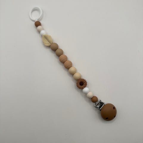 Helt ny smokkesnor i BPA fritt silikon, laget av meg. Perfekt til å holde smokken på plass så den ikke blir kastet av vognen, bilsetet osv.