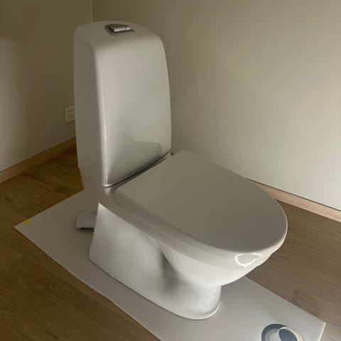 Selger en komplett pakke med Gustavsberg Triomont XS sisterne, Gustavsberg Saval vegghengt toalett og Gustavsberg Duo Triomont XS trykknapp (Toalettsete følger ikke med).
