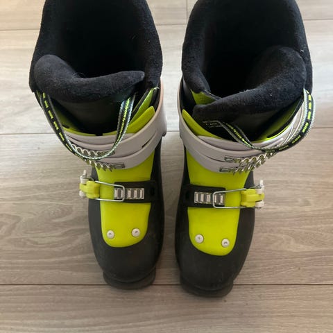 Salomon X Max alpinstøvel i størrelse 25/25,5 cm. Støvelen har en oransje og svart fargekombinasjon og er utstyrt med flere spenner for justering. Egnet for alpint bruk.