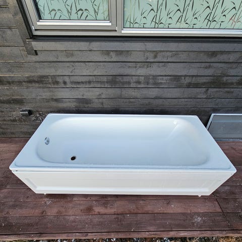 Hvitt hjørnebadekar med lengde 110 x 170 cm. Badekaret har et design tilpasset hjørneplassering og er lite brukt. Badekaret er ferdig demontert og klart for avhenting. Slanger og koblinger medfølger.