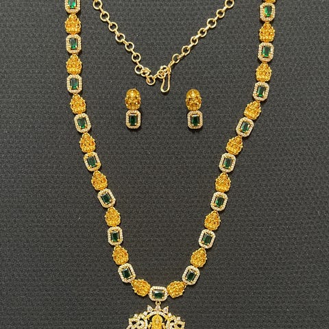 Helt **nytt og ubrukt** indisk smykkesett i klassisk sør-indisk *temple jewelry*-stil.