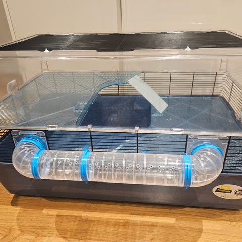 Selger bur, luftegård, reisebur, 2 løpehjul, matskål, hus, stige og badesand. Selges samlet. Må hentes på Hallingby.