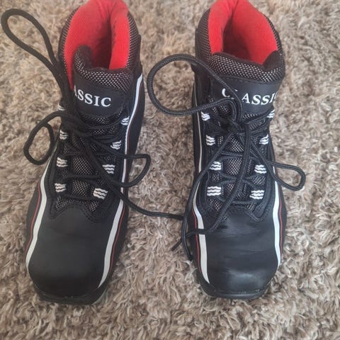Pent brukte skisko til barn. Til langrenn. Størrelse 33