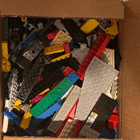 Innehold i boks, løs Lego fra diverse.