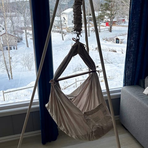 En knapp løsnet på vuggen, så jeg fikk ny vugge av moonboon på garanti. (ubrukt)
