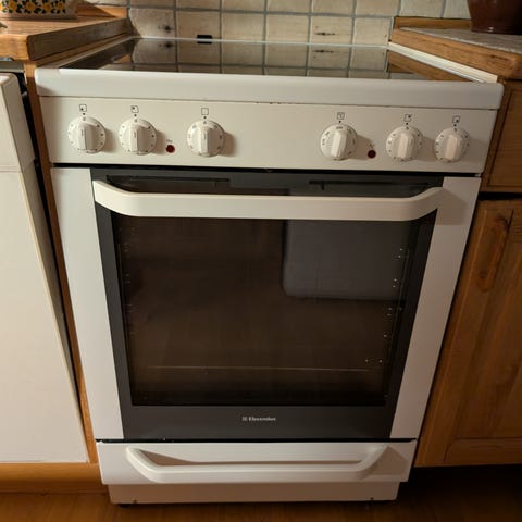 Komfyr kjøpt høsten 2024. Selges grunnet overgang til nytt kjøkken. Har en ripe over ene bryteren, se bilde. Alt fungerer som det skal