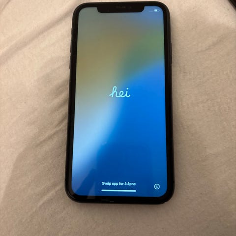 Apple iPhone 11 mobiltelefon i svart farge. Telefonen har en skjerm med flere apper synlige og viser batterikapasitet på 70 %. Enheten kjører iOS og har standard Apple-grensesnitt.