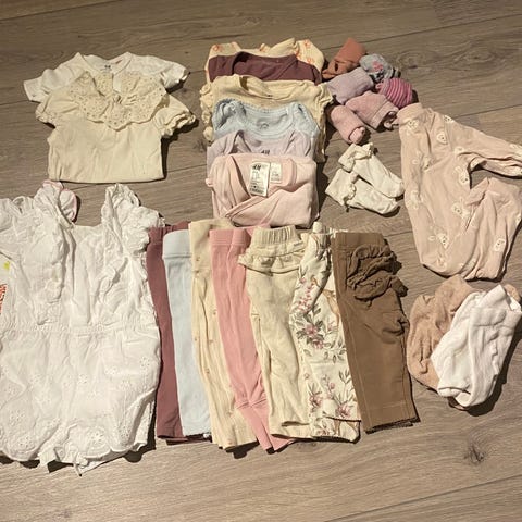 Stor klespakke til jente str. 50 – 49 plagg (mest H&M)