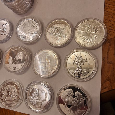 Selger mynter fra bilder. Litt milkflekker.