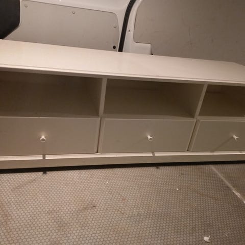 Tv benk gis bort til den som vill ha den, litt bruksmerker siden mannen min var litt uheldig når vi skulle skru den sammen derfor 3 små hull men det kan sikkert fikses, må hentes i Drangedal
