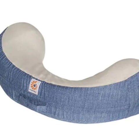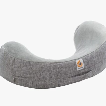 Ergobaby Natural Curve ammepute i grå. Puten har en ergonomisk form som gir støtte under amming. Materialet er mykt og behagelig.